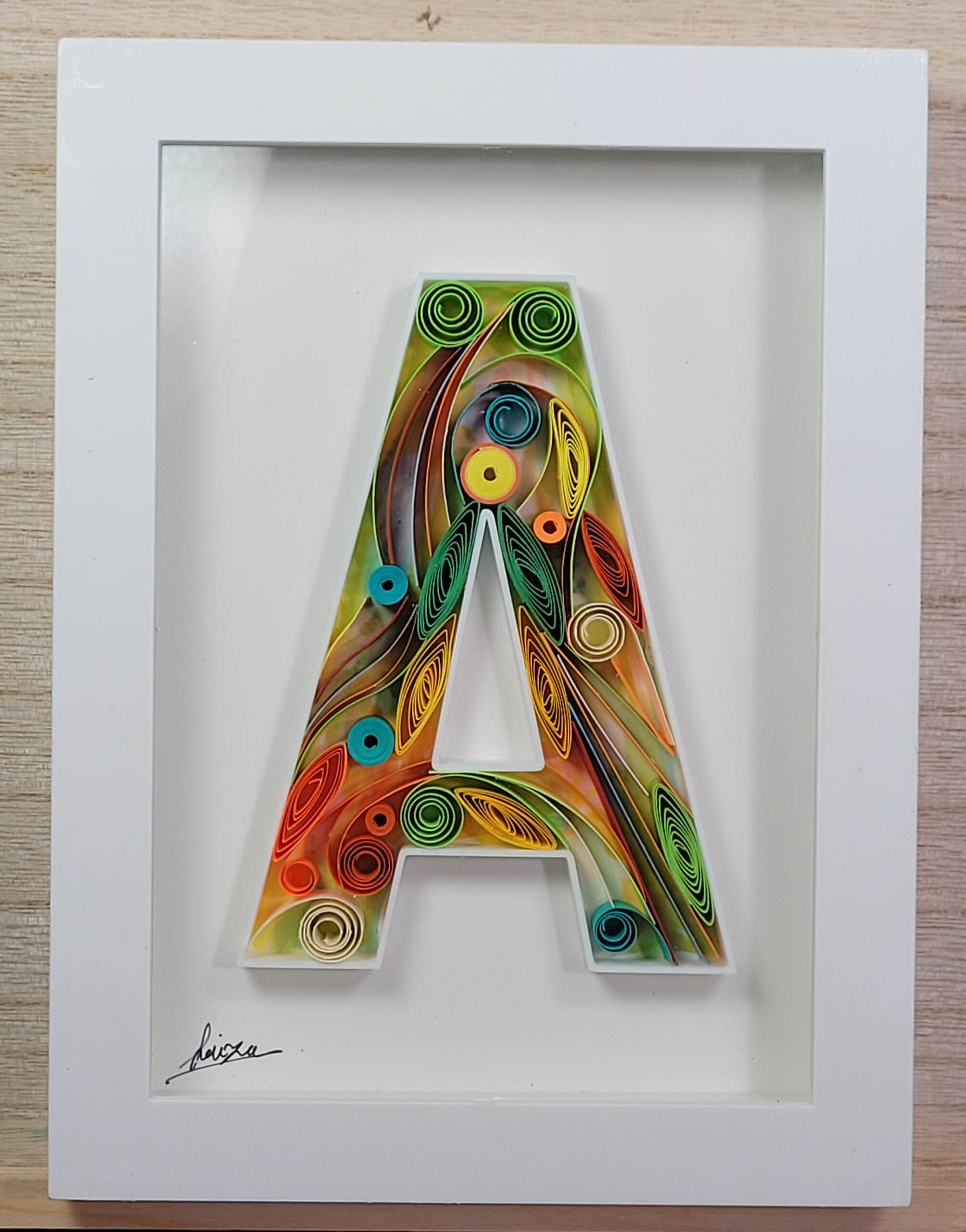 Artwork Letter A – Handmade Quilling Wall Art in Shadow Box Frame